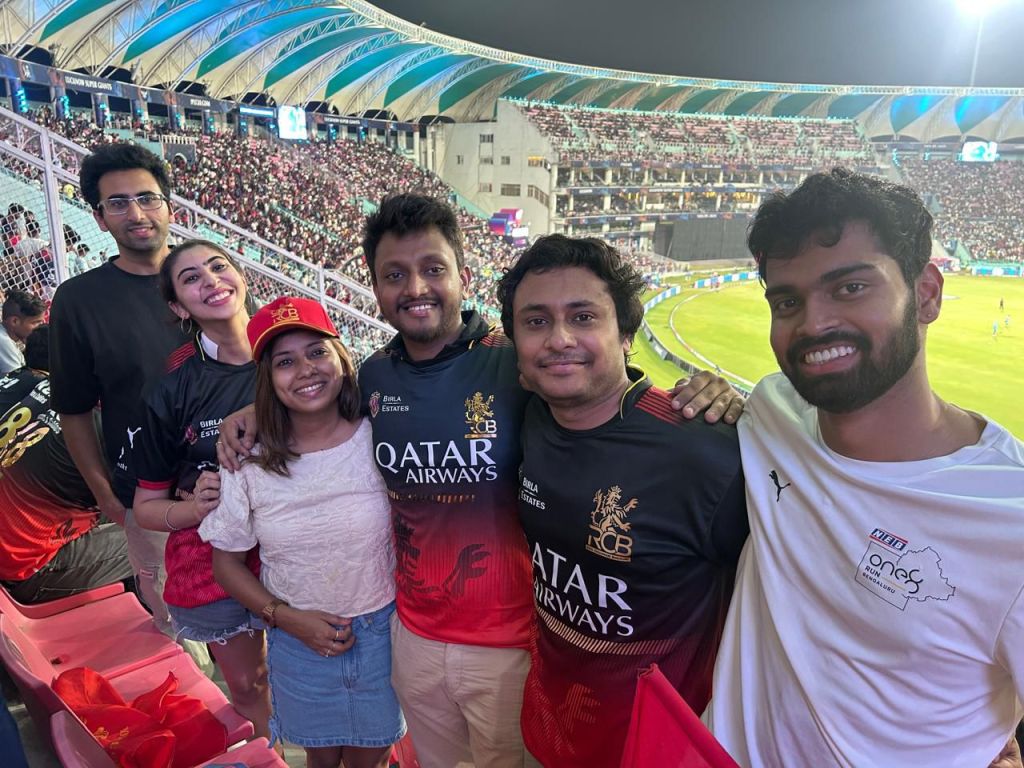 But for me, the game wasn’t just about cricket. My big bro had driven down from Delhi just to be there with me. And that? That made it even more special. We’re not the kind who always sit down and watch cricket together. But that night, we were two people sharing a bucket-list moment: screaming at the same sixes, frowning at the same dropped catches, laughing when someone in the row ahead spilled their Coke mid-over. And my team was there, too 🙂 Donning all reds like a community in-built for me with the same interests.